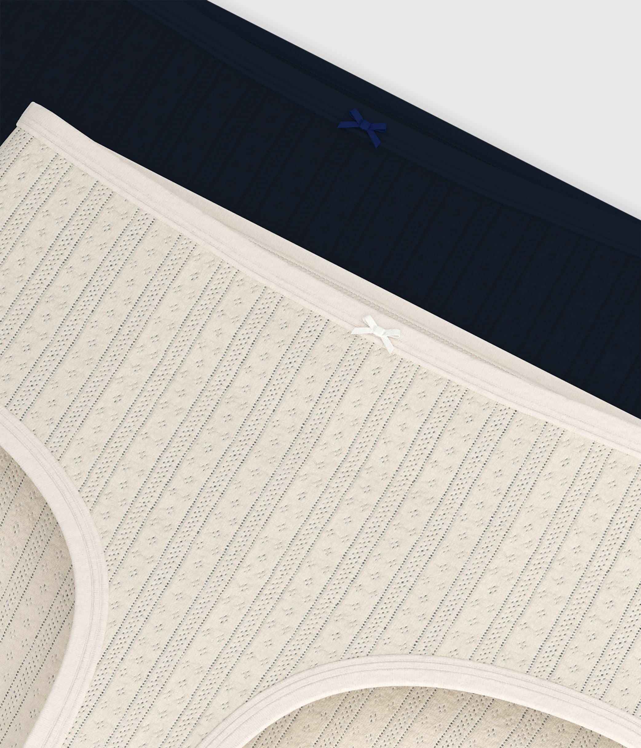 Lot de 2 culottes taille haute en côte 1x1 ajourée, une matière douce, légère et ultra confortable.
